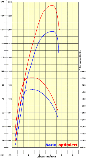 Aufgrund der individuellen Abstimmung sind alle von uns angebotenen Leistungs- und Drehmomentoptimierungen für sämtliche Getriebe- und Antriebsversionen geeignet und erhältlich. Je nach Ausführung, Ausstattung und Baugruppe Ihres Fahrzeuges können die angegebenen Daten geringfügig variieren.