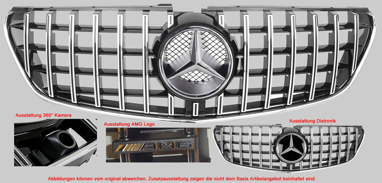 | Art.Nr.: Panamericana Kühlergrill. Chrom Leisten auf Steg. Zubehör. A447GA5880224 Modelle mit & ohne Kamera, NICHT Distronic. ------------------------------ Preis 199,00 € Voraussichtliche Lieferzeit |
